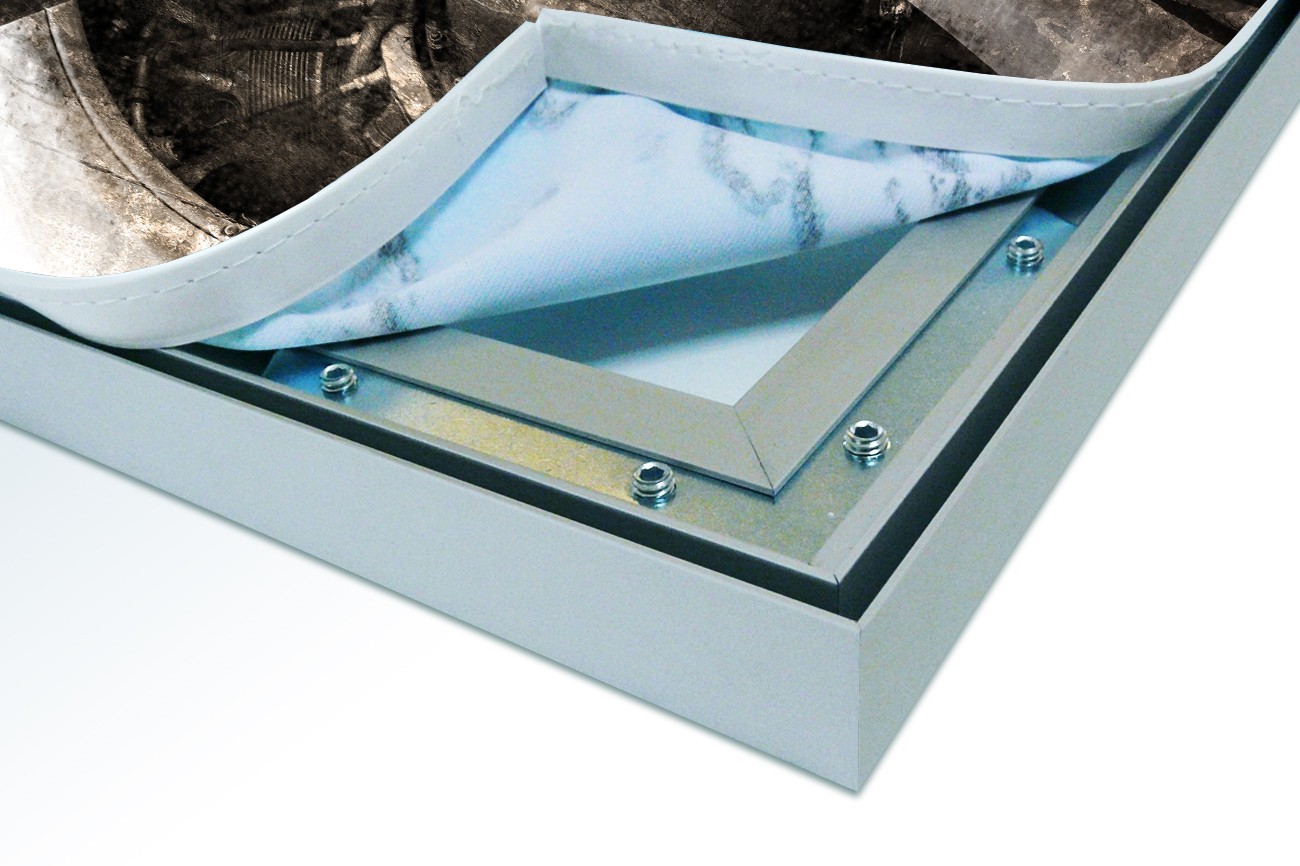 Het aluminium XL Wall Art frame is vanaf de zijde gezien 25 mm hoog, vanaf de voorzijde van de XL Wall Art zie je slechts een aluminium rand van circa 1 mm. De print wordt d.m.v. de sublimatie methode in en op het XL Wall Art doek (220 grams decostof) aangebracht en waarna het doek aan de achterzijde wordt voorzien van een rubber pees. Hierdoor is het werk gemakkelijk in het XL Wall Art frame te plaatsen.