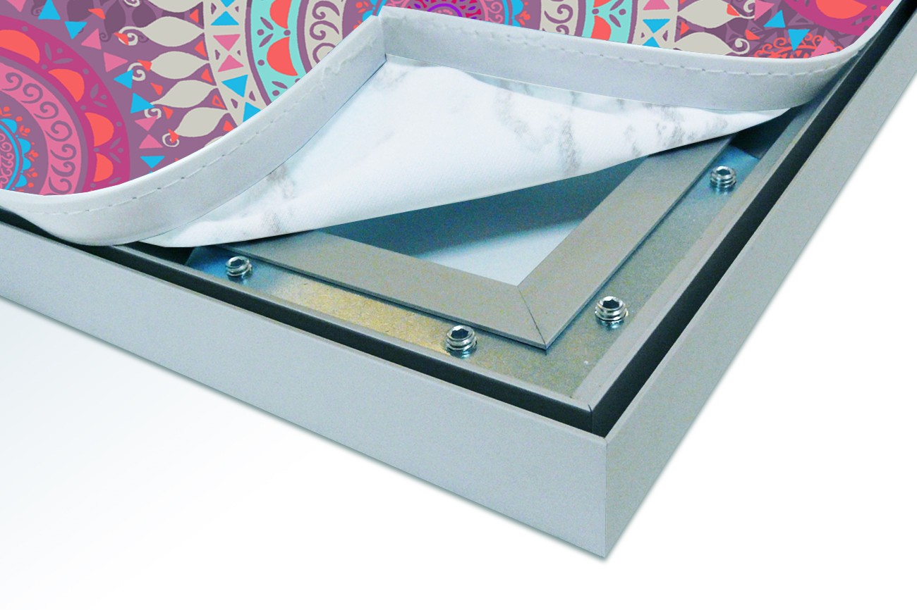 Het aluminium XL Wall Art frame is vanaf de zijde gezien 25 mm hoog, vanaf de voorzijde van de XL Wall Art zie je slechts een aluminium rand van circa 1 mm. De print wordt d.m.v. de sublimatie methode in en op het XL Wall Art doek (220 grams decostof) aangebracht en waarna het doek aan de achterzijde wordt voorzien van een rubber pees. Hierdoor is het werk gemakkelijk in het XL Wall Art frame te plaatsen.