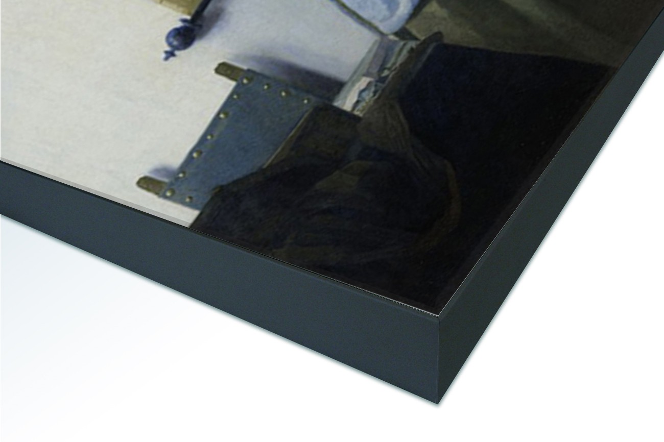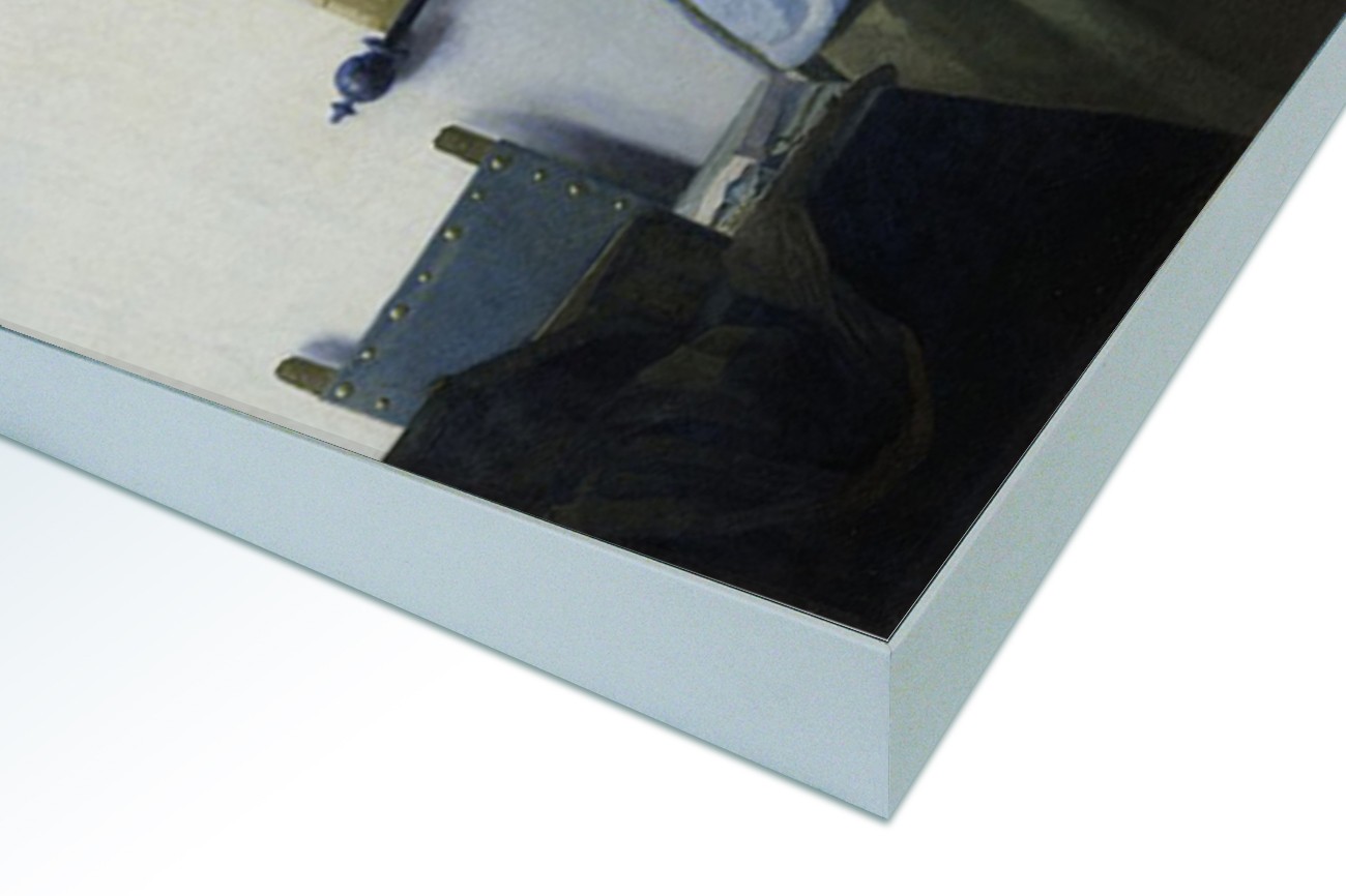 Een stil privémoment – een jonge vrouw staat aandachtig een brief te lezen in het ochtendlicht. Ze is nog in haar blauwe nachtjakje. Dit werk van Johannes Cornelisz Verspronck is verkrijgbaar in verschillende formaten, inclusief textiel frame.