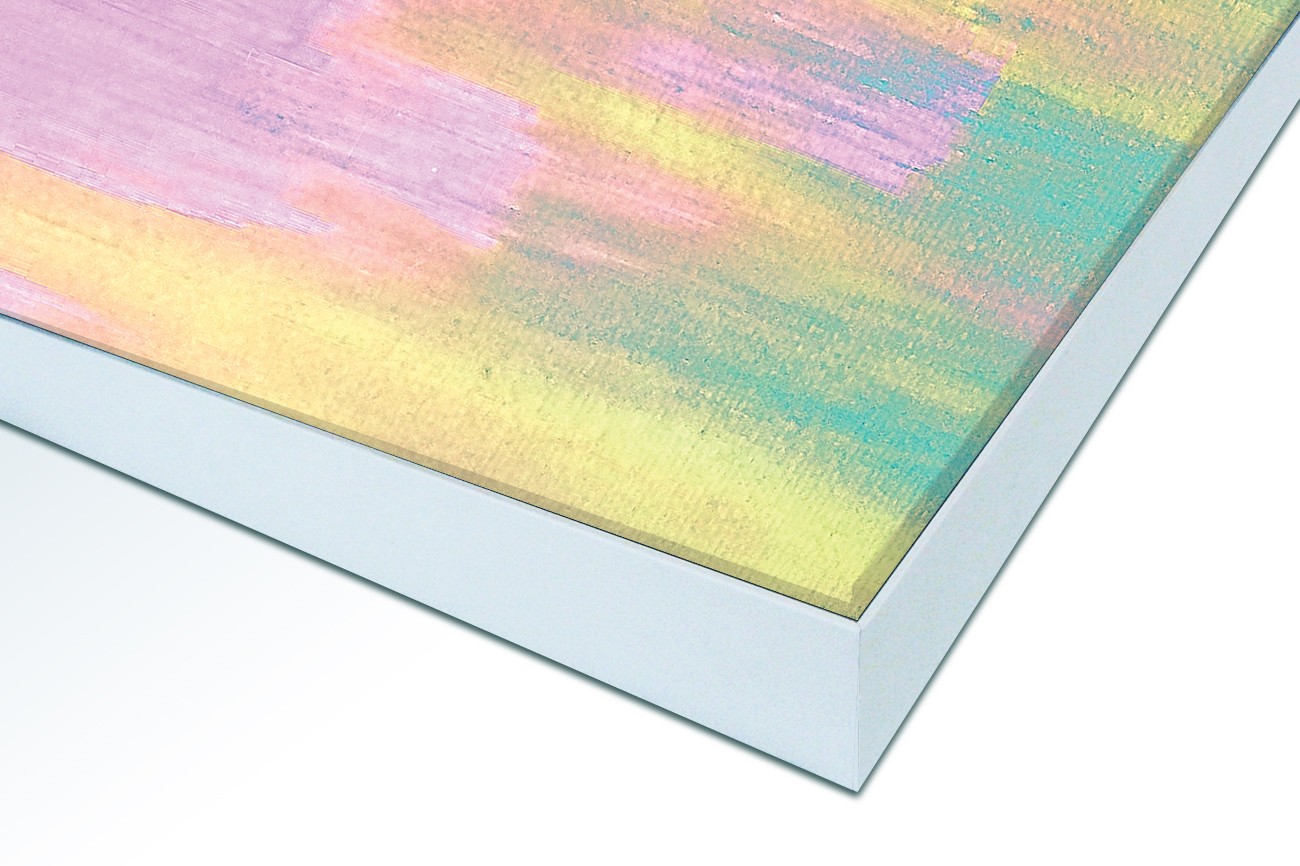 Het aluminium XL Wall Art frame is vanaf de zijde gezien 25 mm hoog, vanaf de voorzijde van de XL Wall Art zie je slechts een aluminium rand van circa 1 mm. De print wordt d.m.v. de sublimatie methode in en op het XL Wall Art doek (220 grams decostof) aangebracht en waarna het doek aan de achterzijde wordt voorzien van een rubber pees. Hierdoor is het werk gemakkelijk in het XL Wall Art frame te plaatsen.