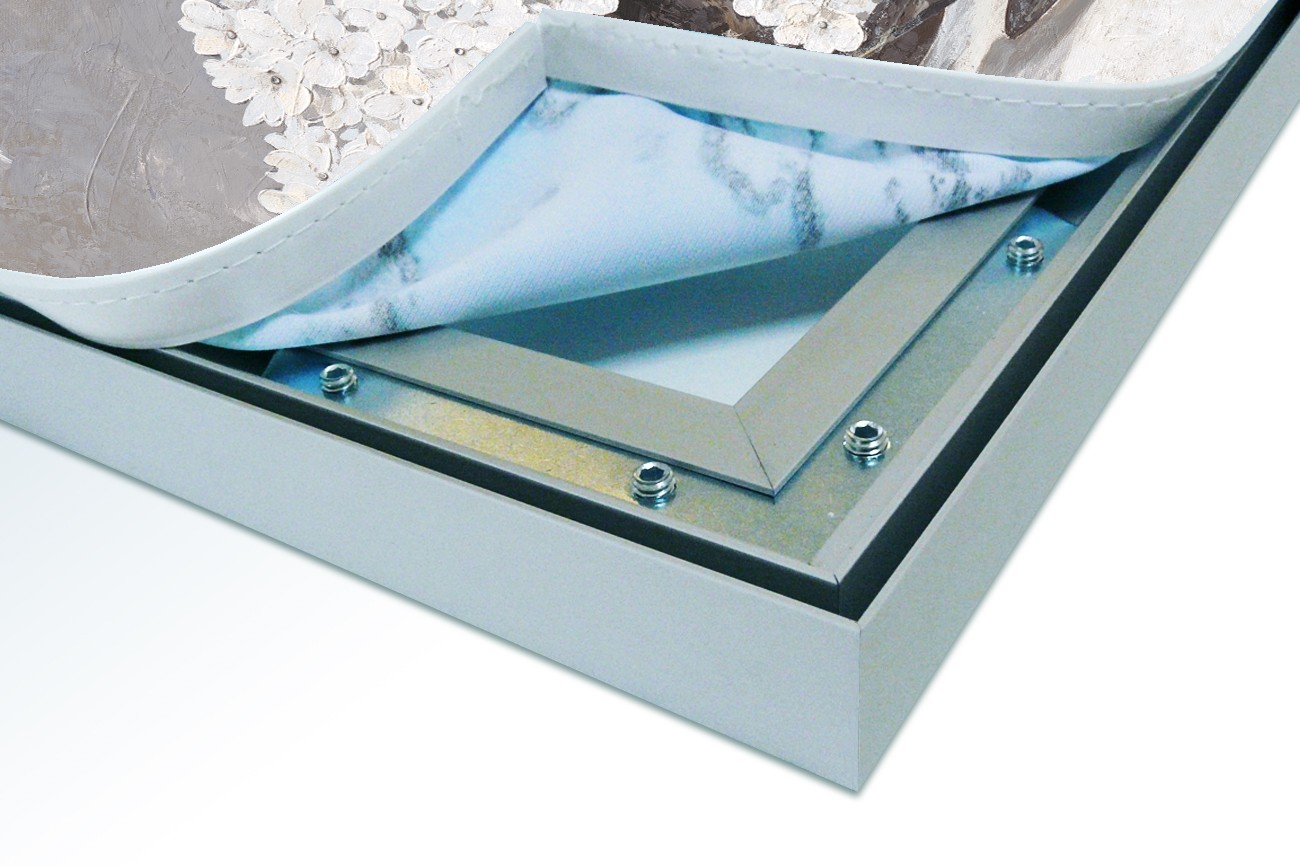 Het aluminium XL Wall Art frame is vanaf de zijde gezien 25 mm hoog, vanaf de voorzijde van de XL Wall Art zie je slechts een aluminium rand van circa 1 mm. De print wordt d.m.v. de sublimatie methode in en op het XL Wall Art doek (220 grams decostof) aangebracht en waarna het doek aan de achterzijde wordt voorzien van een rubber pees. Hierdoor is het werk gemakkelijk in het XL Wall Art frame te plaatsen.