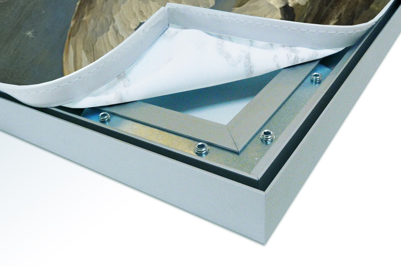 Het aluminium XL Wall Art frame is vanaf de zijde gezien 25 mm hoog, vanaf de voorzijde van de XL Wall Art zie je slechts een aluminium rand van circa 1 mm. De print wordt d.m.v. de sublimatie methode in en op het XL Wall Art doek (220 grams decostof) aangebracht en waarna het doek aan de achterzijde wordt voorzien van een rubber pees. Hierdoor is het werk gemakkelijk in het XL Wall Art frame te plaatsen.
