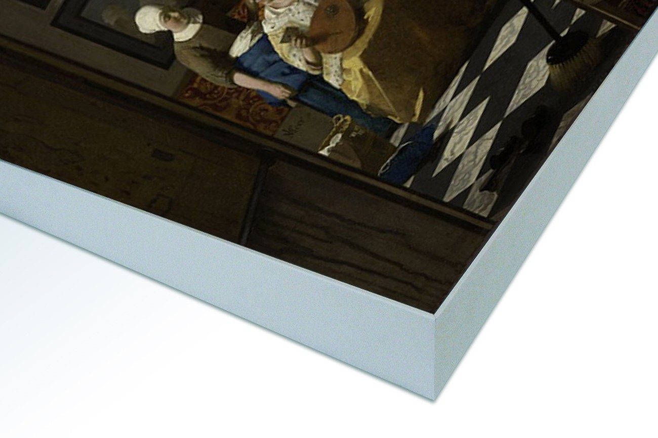 Schilderij van Johannes Vermeer met als titel: 'De liefdesbrief' op textieldoek. Verkrijgbaar in verschillende zeer grote formaten, inclusief textiel frame.