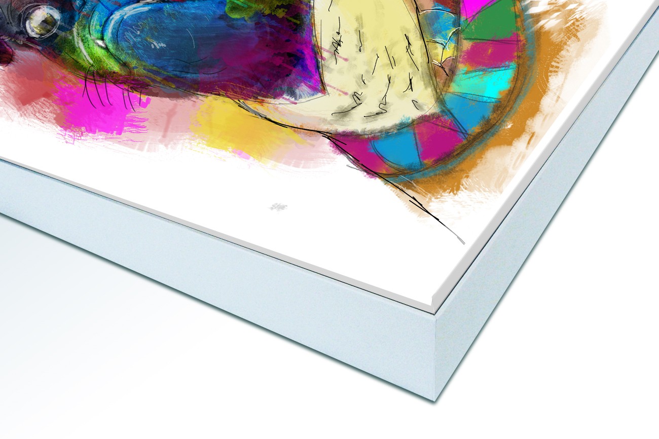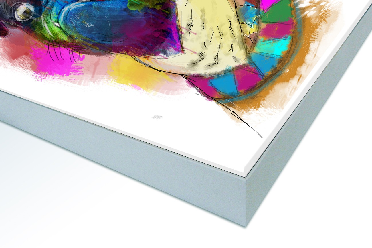 De kleurenexplosie in het werk Dog zie je terug in alle werken van Sander van Laar. Hij creëert hier een komisch beeld van een zwarte hond. Dog is beschikbaar in verschillende formaten, inclusief frame.