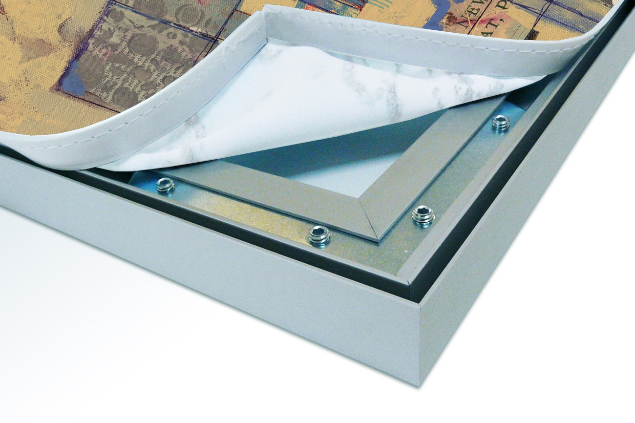 Het aluminium XL Wall Art frame is vanaf de zijde gezien 25 mm hoog, vanaf de voorzijde van de XL Wall Art zie je slechts een aluminium rand van circa 1 mm. De print wordt d.m.v. de sublimatie methode in en op het XL Wall Art doek (220 grams decostof) aangebracht en waarna het doek aan de achterzijde wordt voorzien van een rubber pees. Hierdoor is het werk gemakkelijk in het XL Wall Art frame te plaatsen.