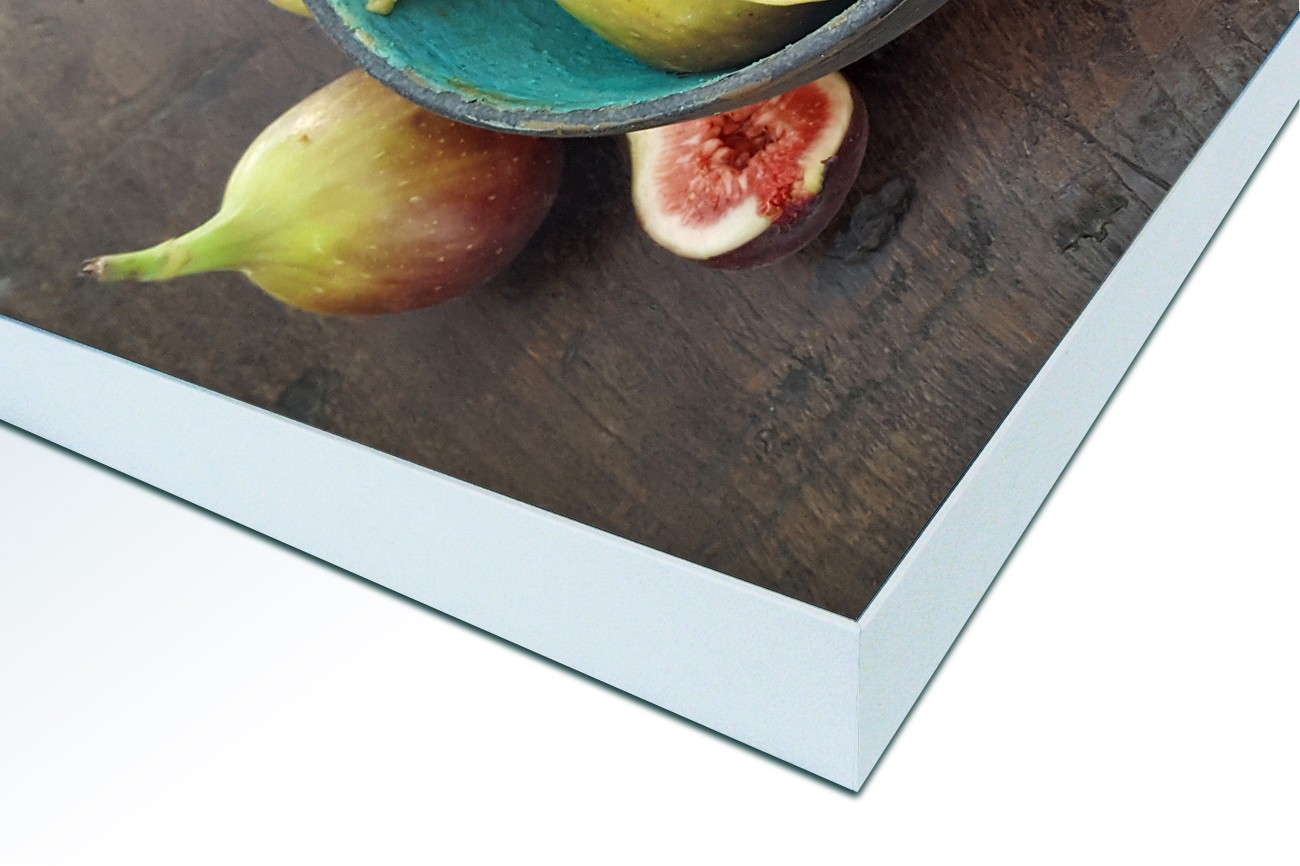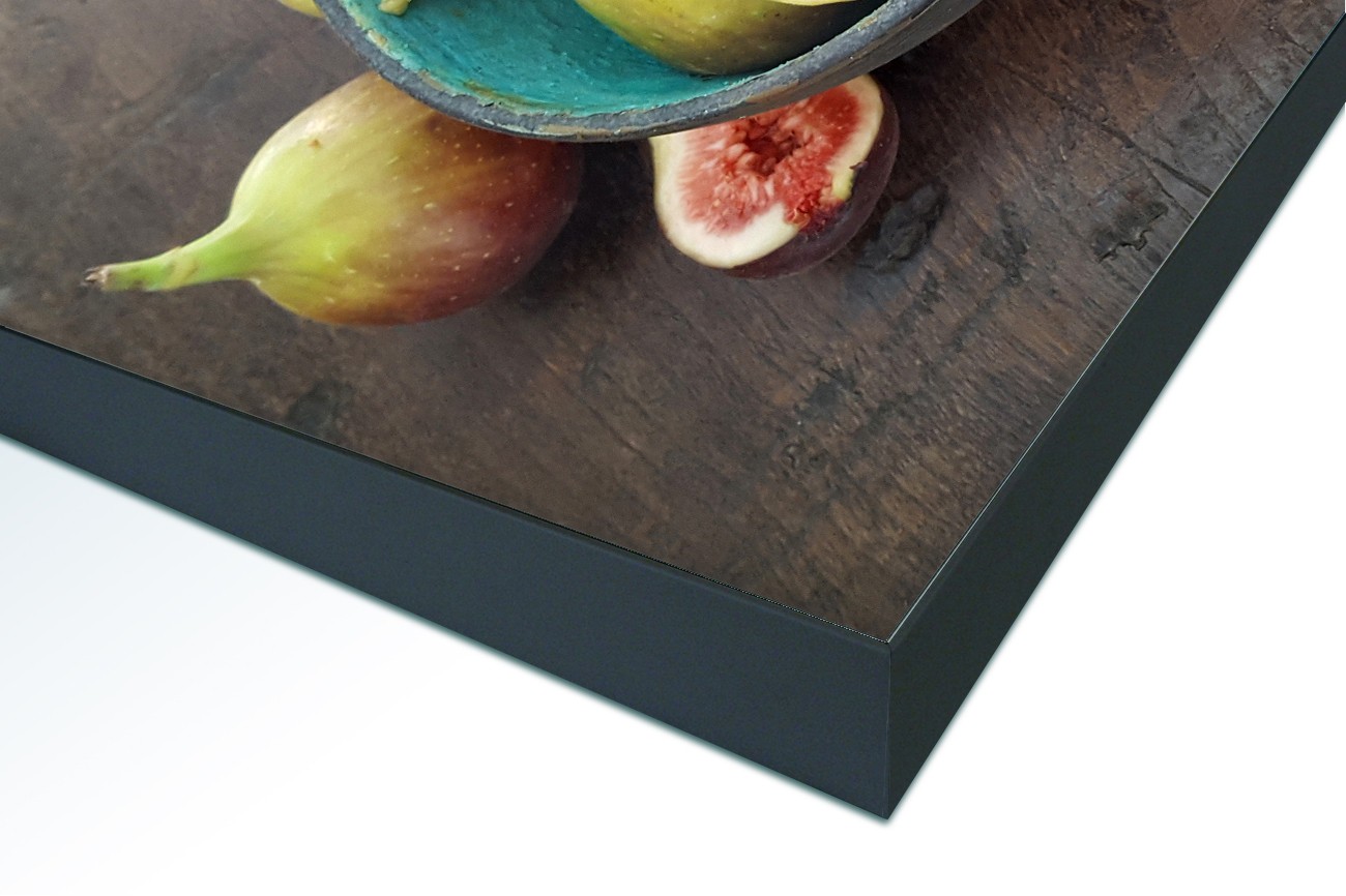 De vijgen in schaal vormen een rustige compositie in Figgs still van Michael Tarin. Zijn werken excelleren in het weergeven van gedetailleerde structuren zoals de vruchten en het houten tafelblad. Figgs still is beschikbaar in verschillende formaten, inclusief aluminium frame.