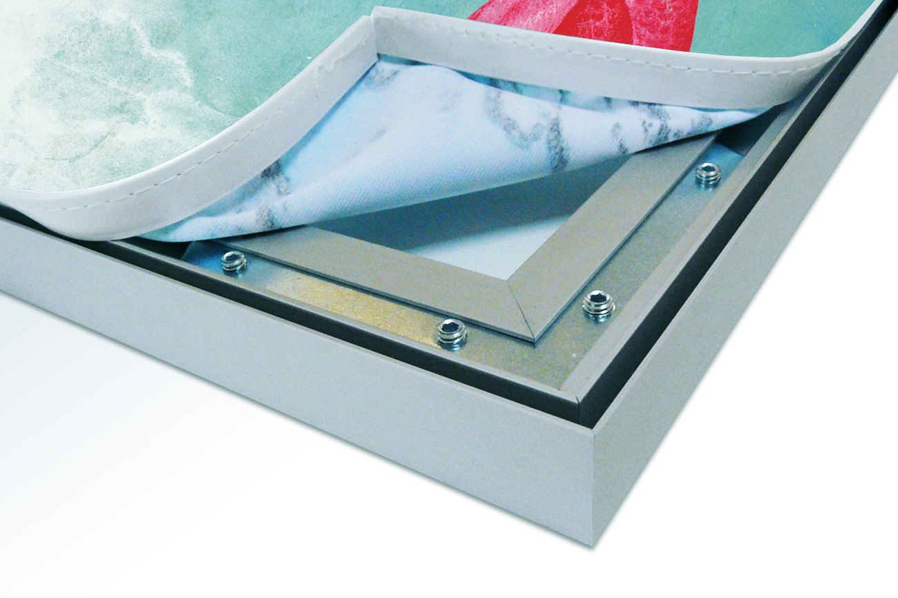Het aluminium XL Wall Art frame is vanaf de zijde gezien 25 mm hoog, vanaf de voorzijde van de XL Wall Art zie je slechts een aluminium rand van circa 1 mm. De print wordt d.m.v. de sublimatie methode in en op het XL Wall Art doek (220 grams decostof) aangebracht en waarna het doek aan de achterzijde wordt voorzien van een rubber pees. Hierdoor is het werk gemakkelijk in het XL Wall Art frame te plaatsen.