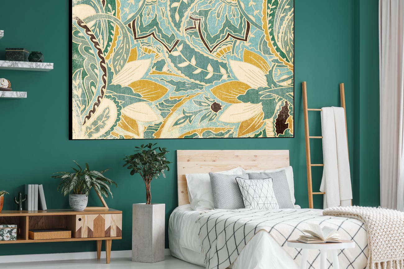 In dit werk genaamd 'Floral Patterns' creëert gray een paradijselijke wereld vol bloemen en planten. Het patroon in dit werk is gekleurd met natuurlijke tinten zoals groen en geel. Floral patterns van Jace Grey is verkrijgbaar in verschillende formaten, inclusief frame.