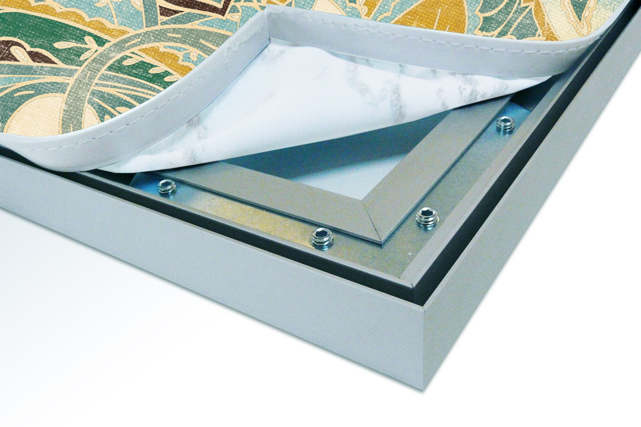 Het aluminium XL Wall Art frame is vanaf de zijde gezien 25 mm hoog, vanaf de voorzijde van de XL Wall Art zie je slechts een aluminium rand van circa 1 mm. De print wordt d.m.v. de sublimatie methode in en op het XL Wall Art doek (220 grams decostof) aangebracht en waarna het doek aan de achterzijde wordt voorzien van een rubber pees. Hierdoor is het werk gemakkelijk in het XL Wall Art frame te plaatsen.
