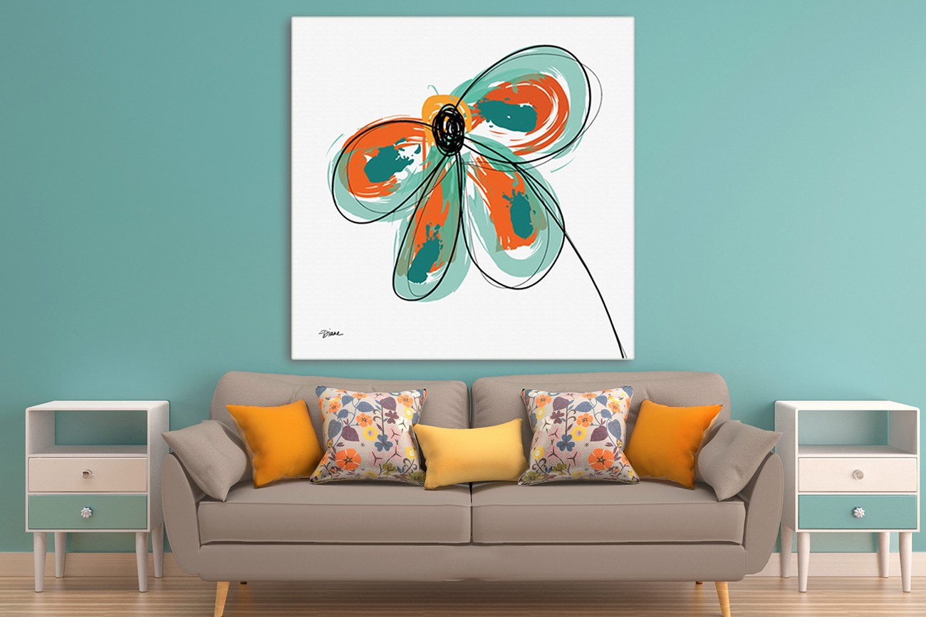 Prachtige geschilderde bloem van Diane Stimson met als titel Gerber funk II op textieldoek. Heldere kleuren op een witte achtergrond zorgt voor een mooi contrast en laat de bloem goed tot zijn recht komen. Gerber funk is verkrijgbaar in verschillende formaten, inclusief textiel frame.