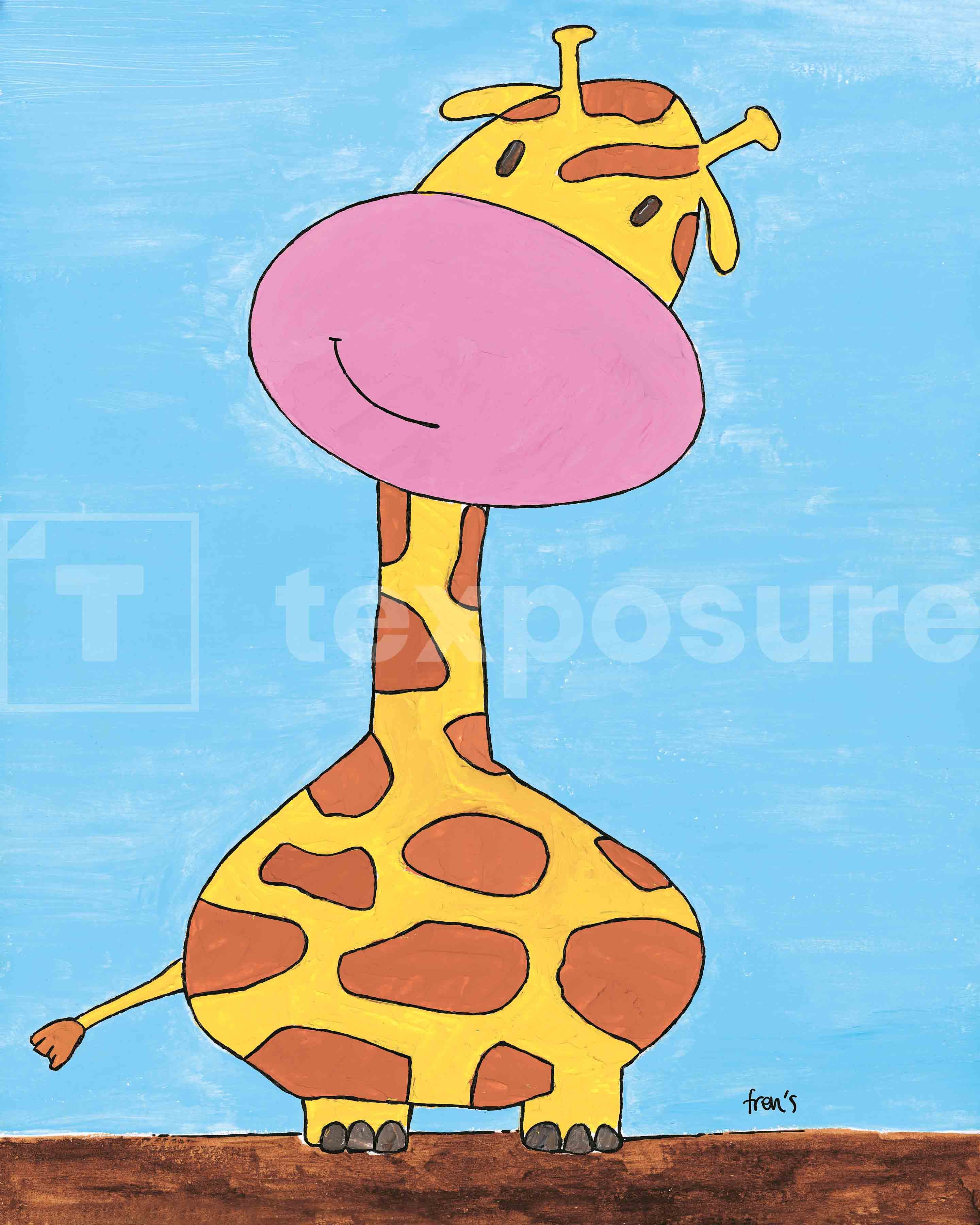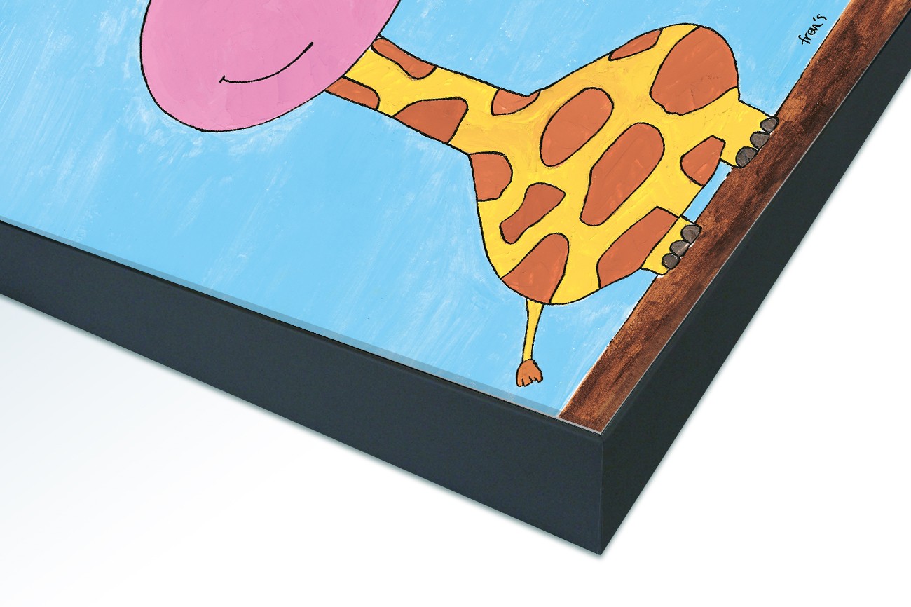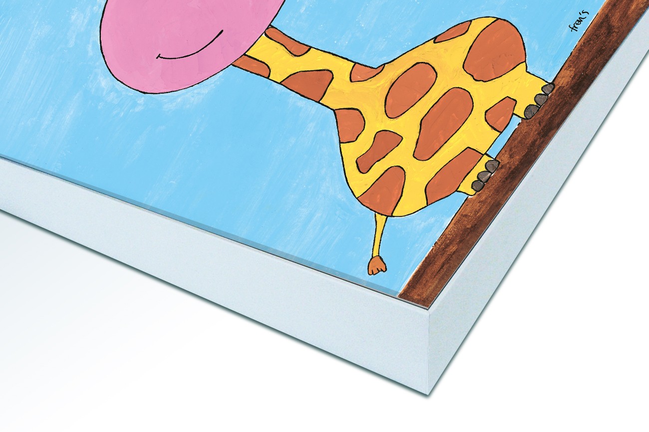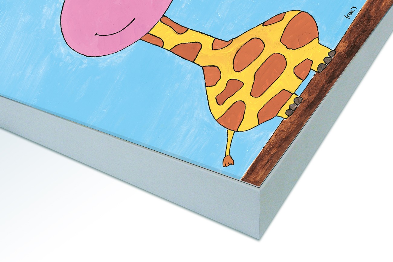 Deze vrolijke giraffe is gemaakt door Francis Veroude. De vrolijke kleuren passen goed bij het interieur van een kinderkamer. Verkrijgbaar in verschillende formaten, inclusief frame.