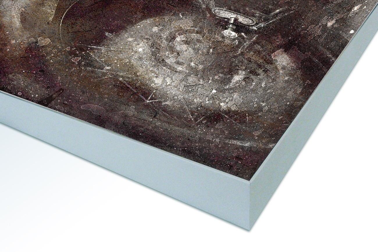 Het aluminium XL Wall Art frame is vanaf de zijde gezien 25 mm hoog, vanaf de voorzijde van de XL Wall Art zie je slechts een aluminium rand van circa 1 mm. De print wordt d.m.v. de sublimatie methode in en op het XL Wall Art doek (220 grams decostof) aangebracht en waarna het doek aan de achterzijde wordt voorzien van een rubber pees. Hierdoor is het werk gemakkelijk in het XL Wall Art frame te plaatsen.