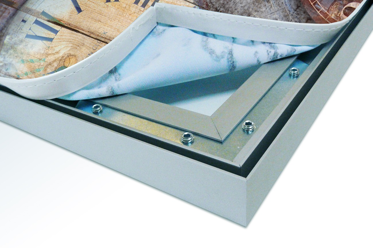 Het aluminium XL Wall Art frame is vanaf de zijde gezien 25 mm hoog, vanaf de voorzijde van de XL Wall Art zie je slechts een aluminium rand van circa 1 mm. De print wordt d.m.v. de sublimatie methode in en op het XL Wall Art doek (220 grams decostof) aangebracht en waarna het doek aan de achterzijde wordt voorzien van een rubber pees. Hierdoor is het werk gemakkelijk in het XL Wall Art frame te plaatsen.