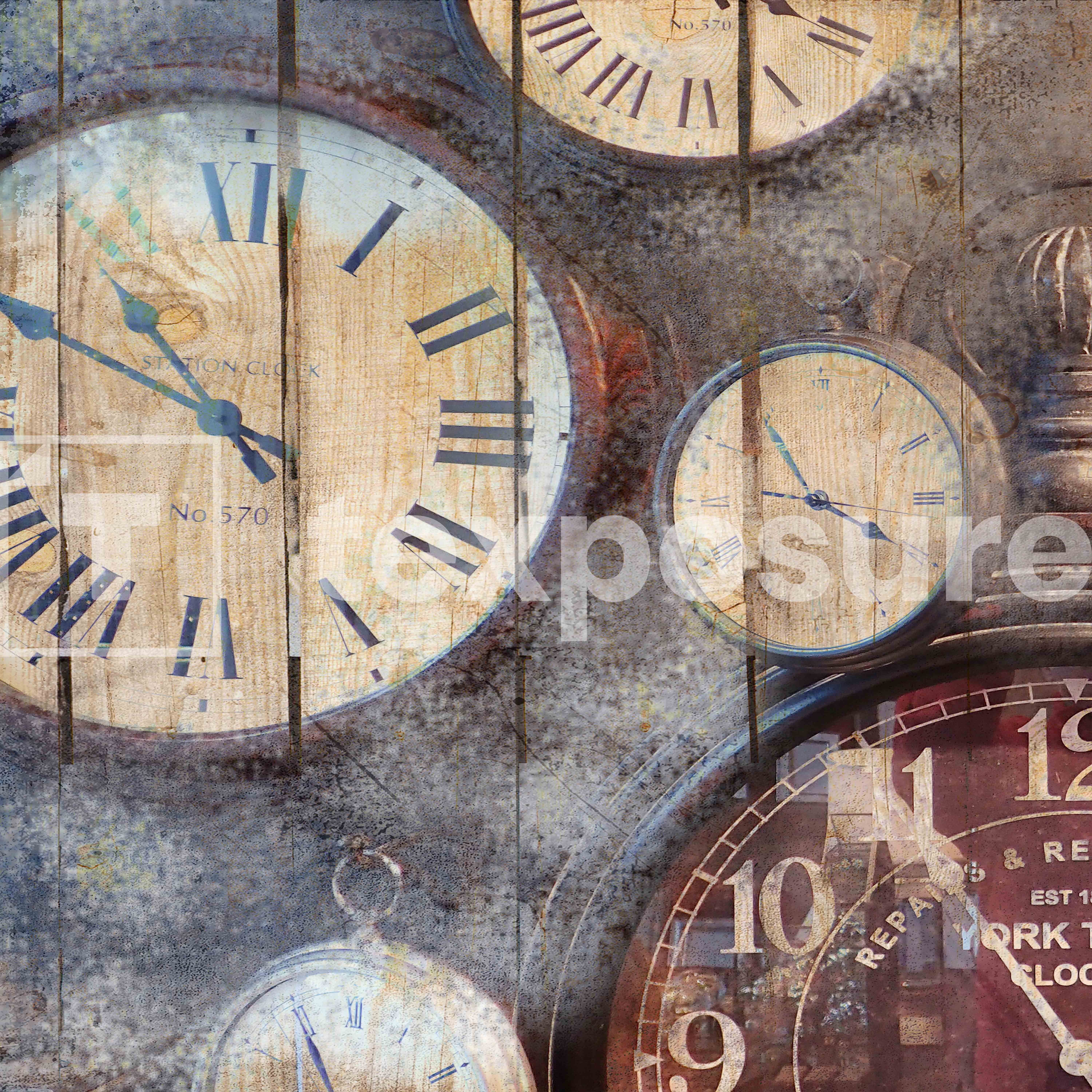 Dit werk is onderdeel van een serie met het onderwerp tijd. Kimberly Allen laat in dit werk verschillende klokken in aarde tinten zien. De ronde vormen met de scherpe lijnen van de wijzers vormen samen een interessante compositie. Verkrijgbaar in verschillende formaten, inclusief textiel frame.