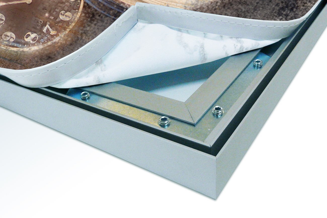 Het aluminium XL Wall Art frame is vanaf de zijde gezien 25 mm hoog, vanaf de voorzijde van de XL Wall Art zie je slechts een aluminium rand van circa 1 mm. De print wordt d.m.v. de sublimatie methode in en op het XL Wall Art doek (220 grams decostof) aangebracht en waarna het doek aan de achterzijde wordt voorzien van een rubber pees. Hierdoor is het werk gemakkelijk in het XL Wall Art frame te plaatsen.