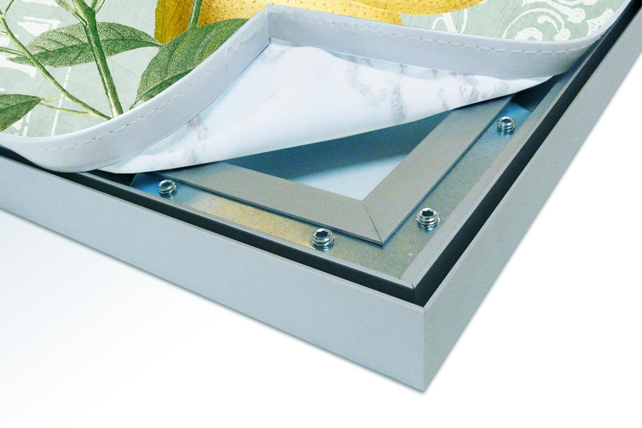 Het aluminium XL Wall Art frame is vanaf de zijde gezien 25 mm hoog, vanaf de voorzijde van de XL Wall Art zie je slechts een aluminium rand van circa 1 mm. De print wordt d.m.v. de sublimatie methode in en op het XL Wall Art doek (220 grams decostof) aangebracht en waarna het doek aan de achterzijde wordt voorzien van een rubber pees. Hierdoor is het werk gemakkelijk in het XL Wall Art frame te plaatsen.