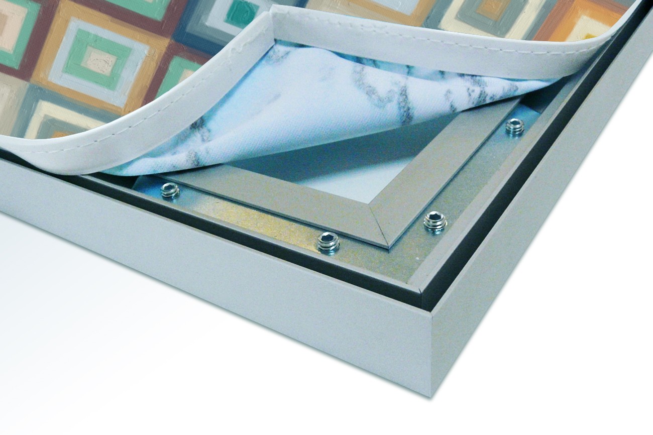 Het aluminium XL Wall Art frame is vanaf de zijde gezien 25 mm hoog, vanaf de voorzijde van de XL Wall Art zie je slechts een aluminium rand van circa 1 mm. De print wordt d.m.v. de sublimatie methode in en op het XL Wall Art doek (220 grams decostof) aangebracht en waarna het doek aan de achterzijde wordt voorzien van een rubber pees. Hierdoor is het werk gemakkelijk in het XL Wall Art frame te plaatsen.