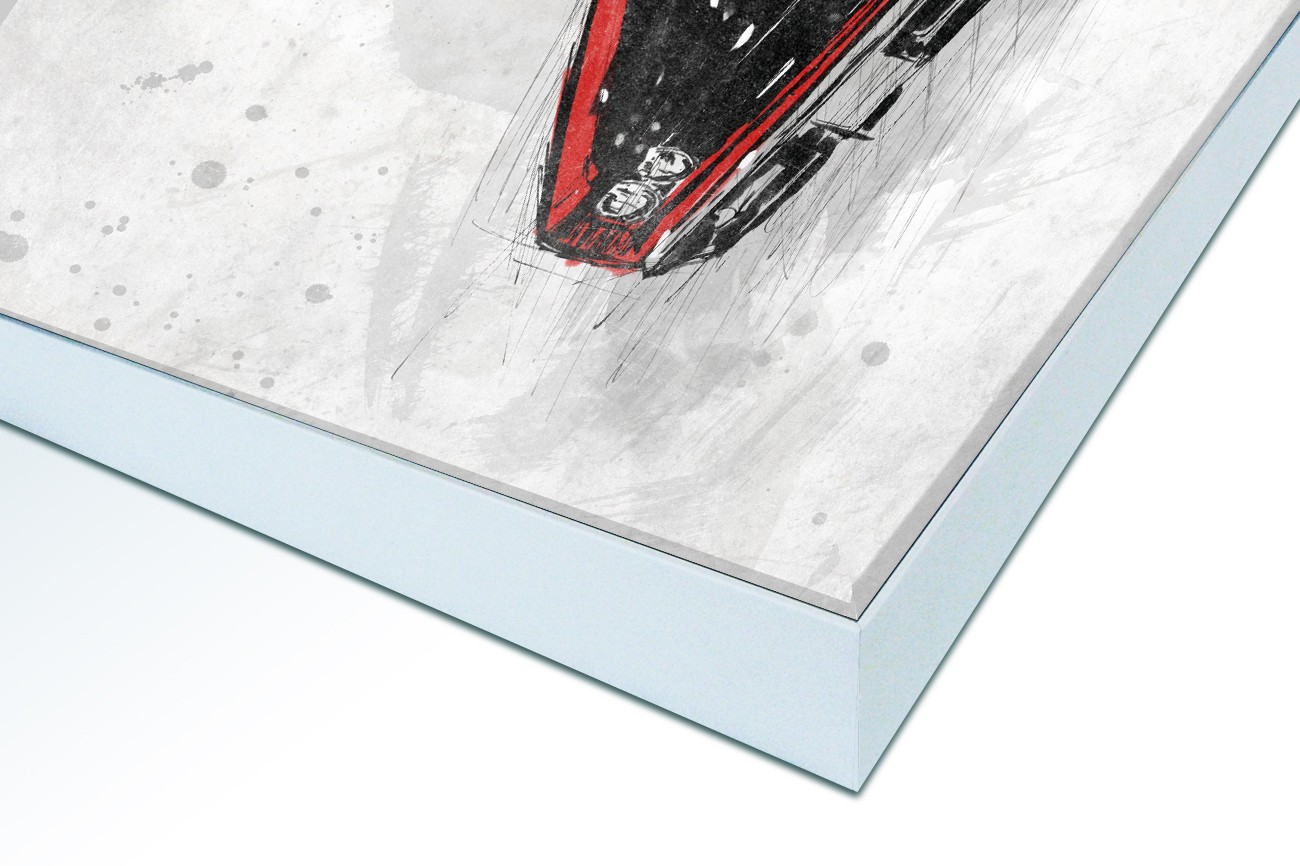 Een werk uit de collectie van de kunstenaar Onrei met de titel Muscle car I. Onrei verbeeld in dit werk een stoere oude rode auto die bekend staat om zijn grote vermogen. Dit werk is verkrijgbaar in verschillende formaten, inclusief textiel frame.