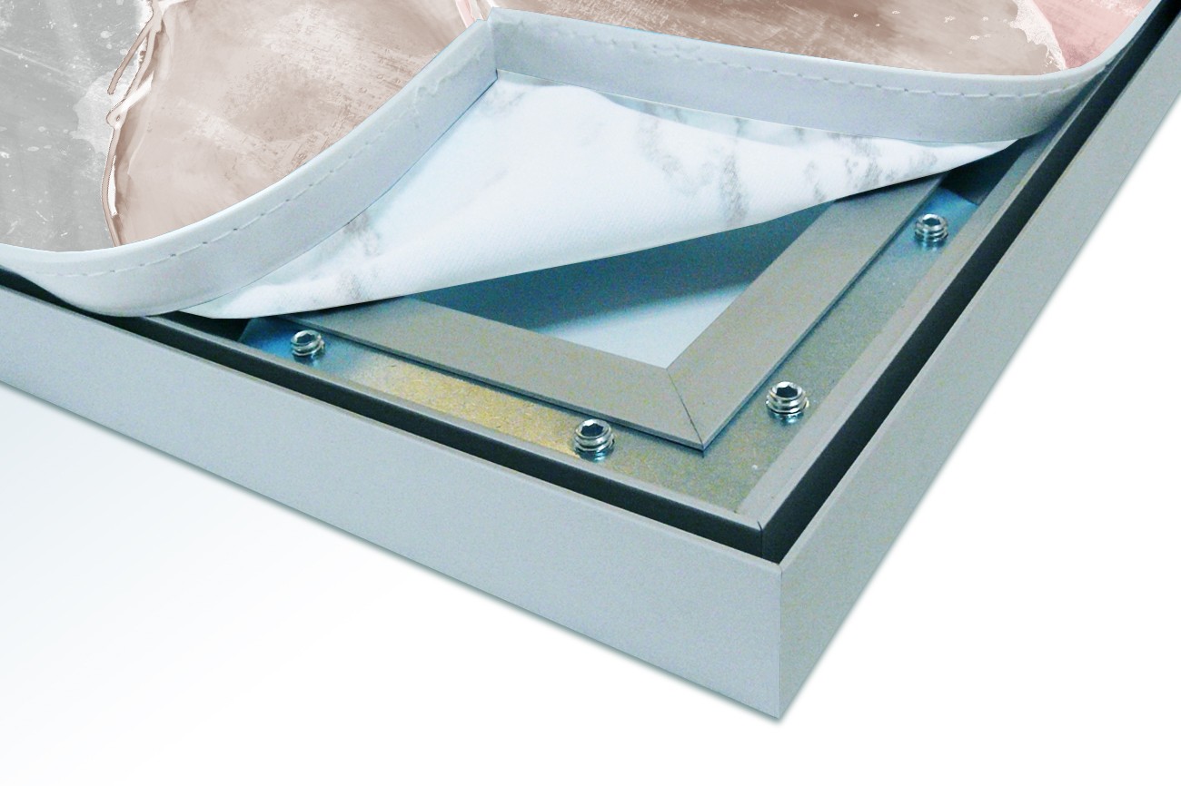 Het aluminium XL Wall Art frame is vanaf de zijde gezien 25 mm hoog, vanaf de voorzijde van de XL Wall Art zie je slechts een aluminium rand van circa 1 mm. De print wordt d.m.v. de sublimatie methode in en op het XL Wall Art doek (220 grams decostof) aangebracht en waarna het doek aan de achterzijde wordt voorzien van een rubber pees. Hierdoor is het werk gemakkelijk in het XL Wall Art frame te plaatsen.