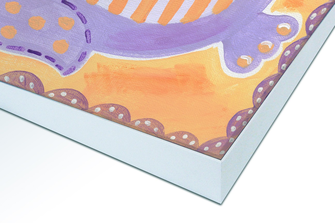 De paarse uil van Tammy Hassett met als titel Owl blue op textieldoek heeft een zachte uitstraling door het gebruik van pasteltinten. Dit werk past goed op een kinderkamer en is verkrijgbaar in verschillende formaten, inclusief textiel frame.