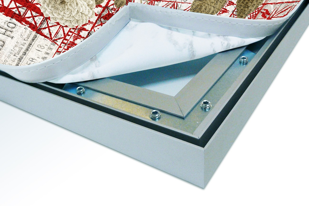 Het aluminium XL Wall Art frame is vanaf de zijde gezien 25 mm hoog, vanaf de voorzijde van de XL Wall Art zie je slechts een aluminium rand van circa 1 mm. De print wordt d.m.v. de sublimatie methode in en op het XL Wall Art doek (220 grams decostof) aangebracht en waarna het doek aan de achterzijde wordt voorzien van een rubber pees. Hierdoor is het werk gemakkelijk in het XL Wall Art frame te plaatsen.