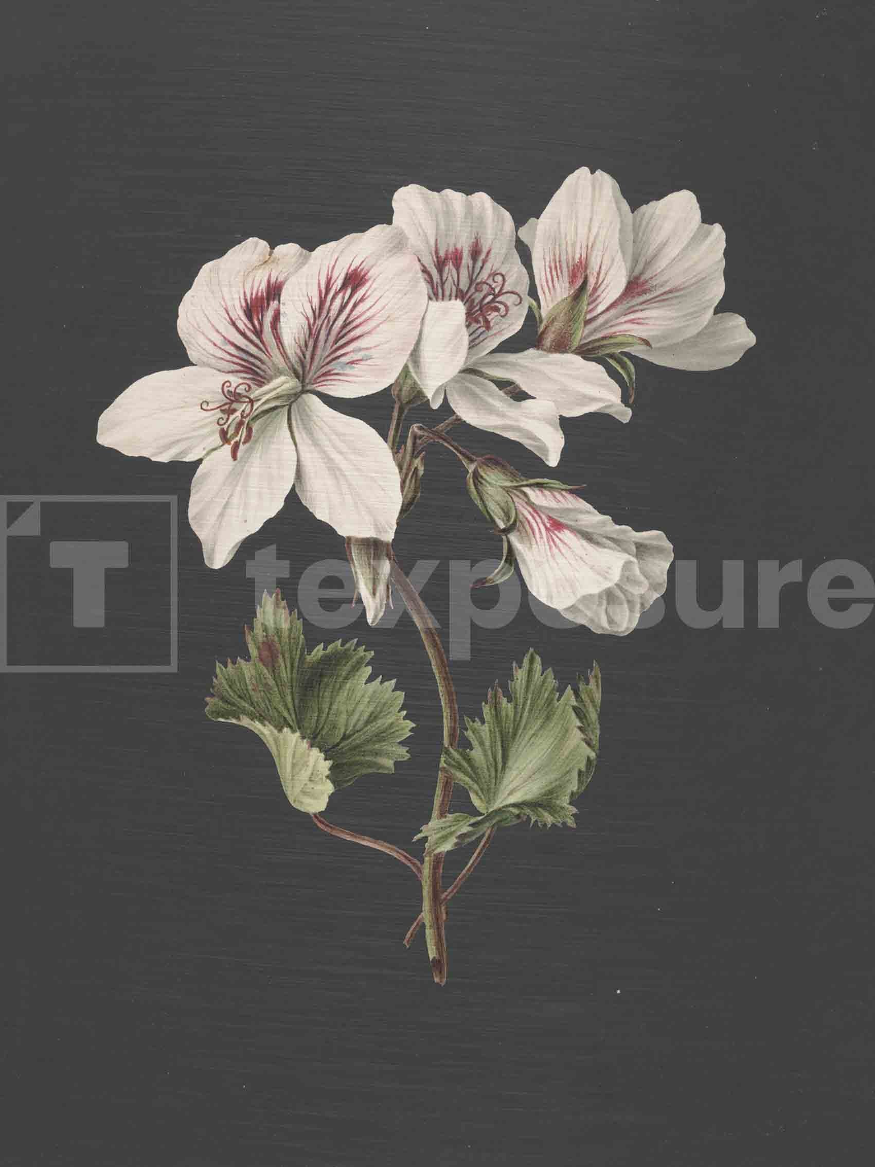 Deze prachtige tekening is gemaakt door M. de Gijselaar. Hij staat bekend om zijn gedetaileerde tekeningen van planten en bloemen. Op deze prent verbeeld hij een Pelargonium, een bloem uit de familie Geraniaceae. Pelargonium is beschikbaar in verschillende formaten, inclusief textieldoek.
