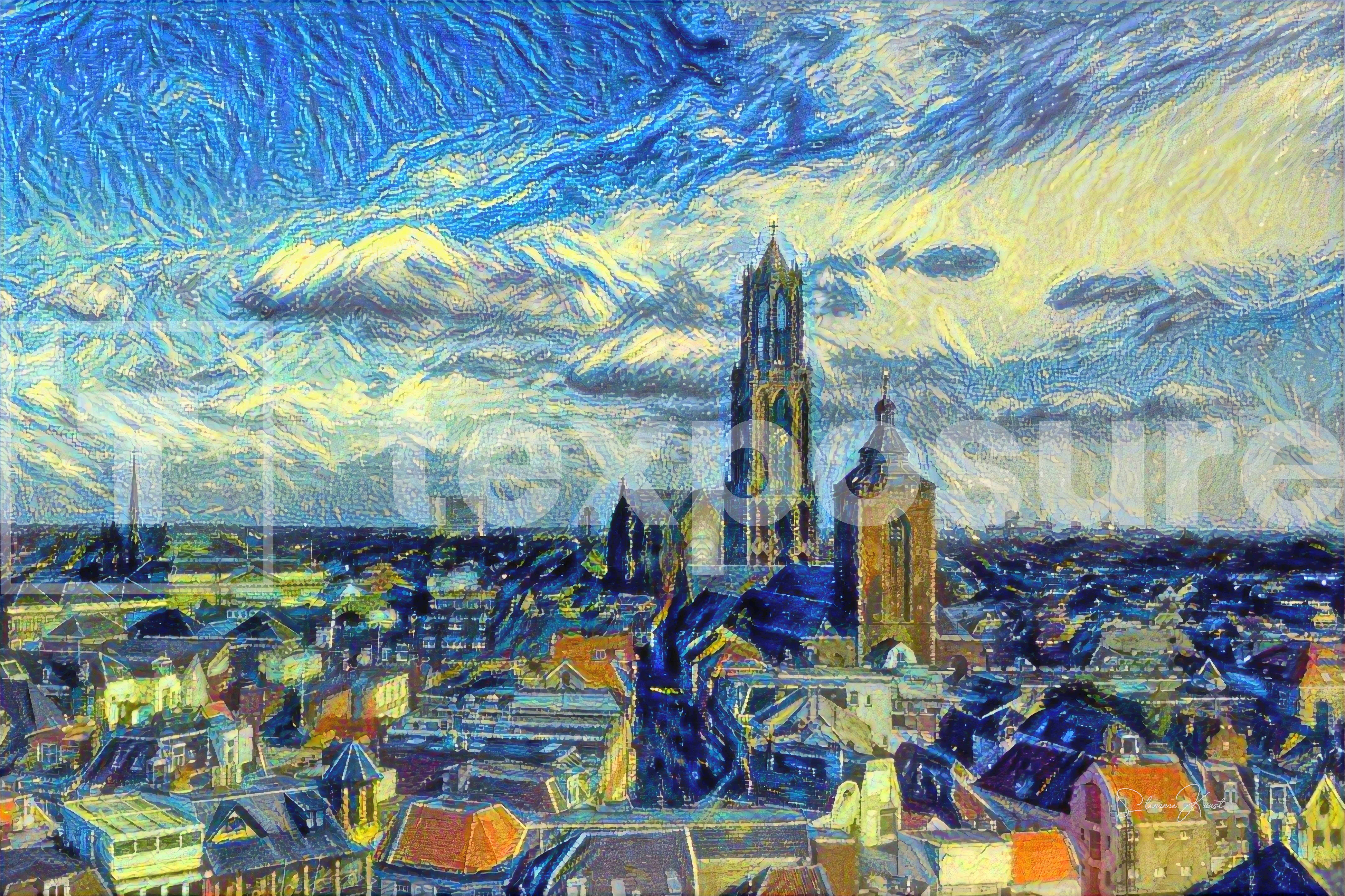 Skyline met Domkerk Utrecht in de stijl van Van Gogh