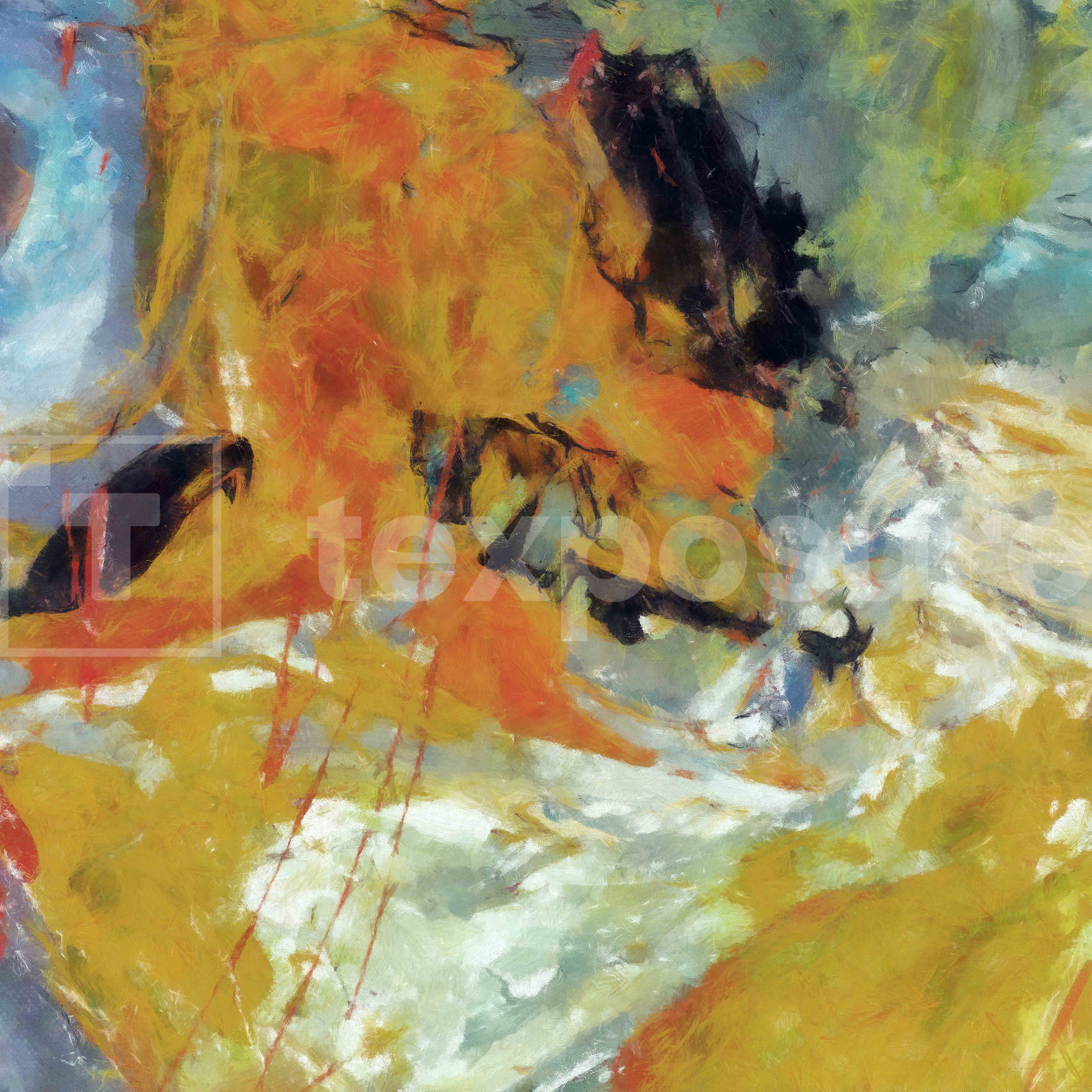 Stigma I op textieldoek van Taylor Greene is een explosie van verschillende kleuren. Door de grove toets weet Greene een spannend en misterieus beeld, bestaande uit warme kleuren neer te zetten. Dit kleurrijke werk is in verschillende formaten beschikbaar en wordt geleverd inclusief frame.