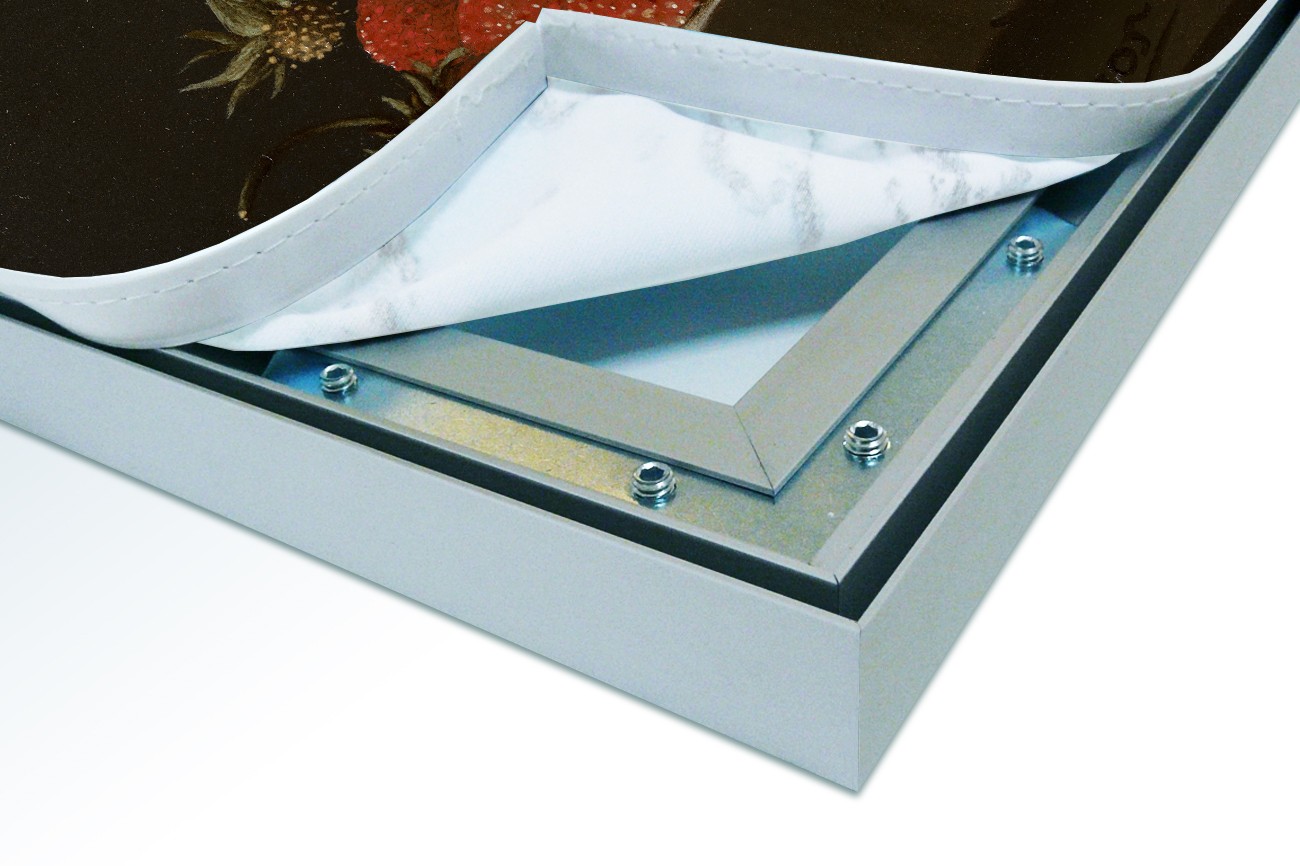 Het aluminium XL Wall Art frame is vanaf de zijde gezien 25 mm hoog, vanaf de voorzijde van de XL Wall Art zie je slechts een aluminium rand van circa 1 mm. De print wordt d.m.v. de sublimatie methode in en op het XL Wall Art doek (220 grams decostof) aangebracht en waarna het doek aan de achterzijde wordt voorzien van een rubber pees. Hierdoor is het werk gemakkelijk in het XL Wall Art frame te plaatsen.