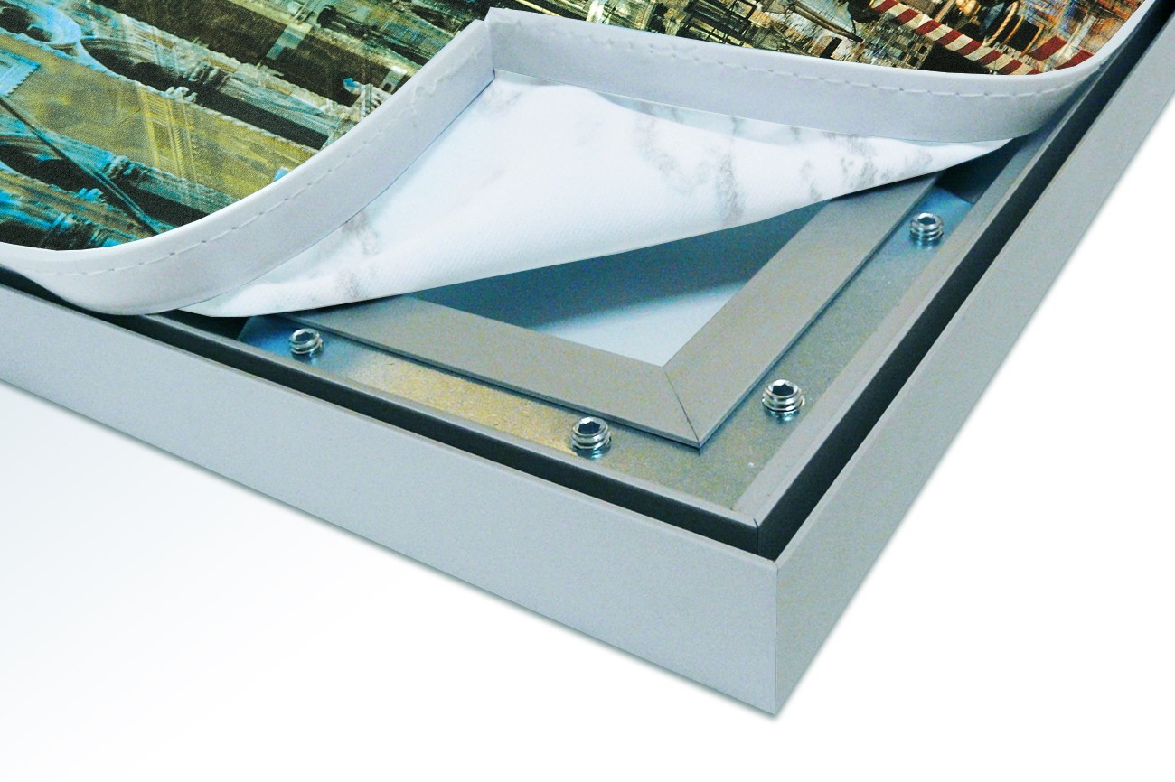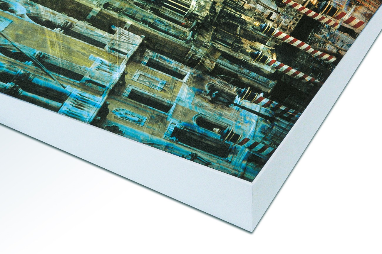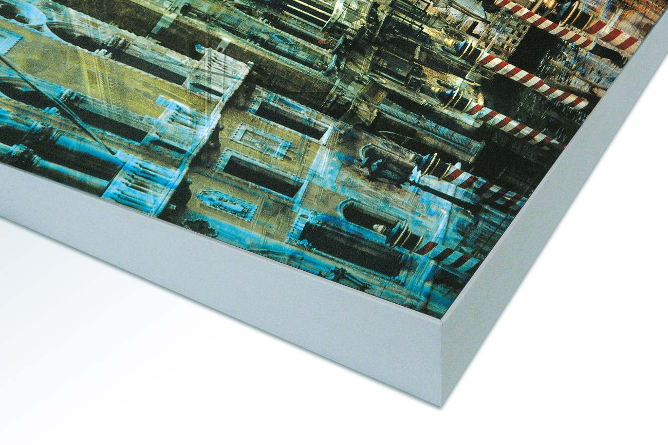 Het aluminium XL Wall Art frame is vanaf de zijde gezien 25 mm hoog, vanaf de voorzijde van de XL Wall Art zie je slechts een aluminium rand van circa 1 mm. De print wordt d.m.v. de sublimatie methode in en op het XL Wall Art doek (220 grams decostof) aangebracht en waarna het doek aan de achterzijde wordt voorzien van een rubber pees. Hierdoor is het werk gemakkelijk in het XL Wall Art frame te plaatsen.