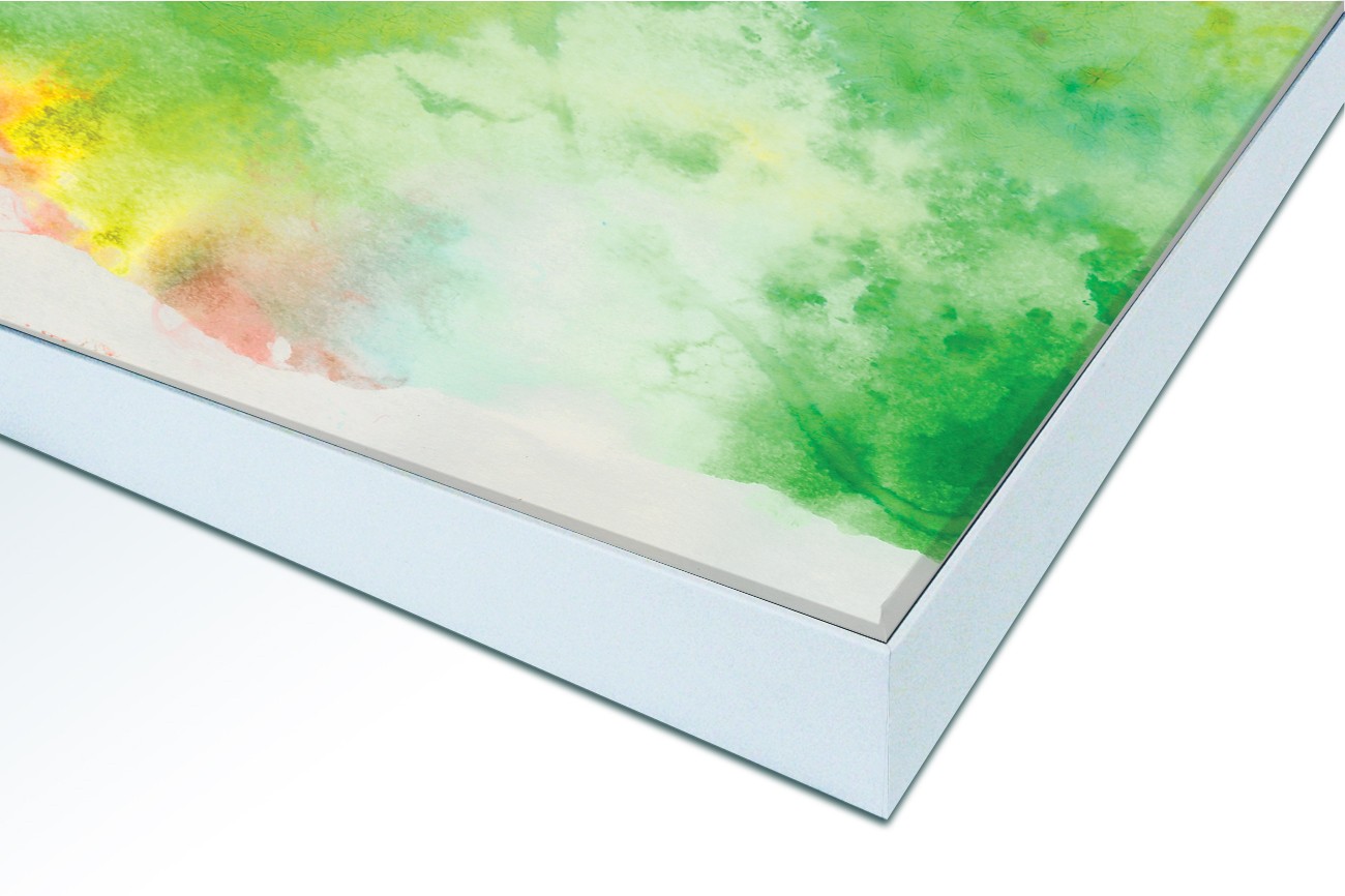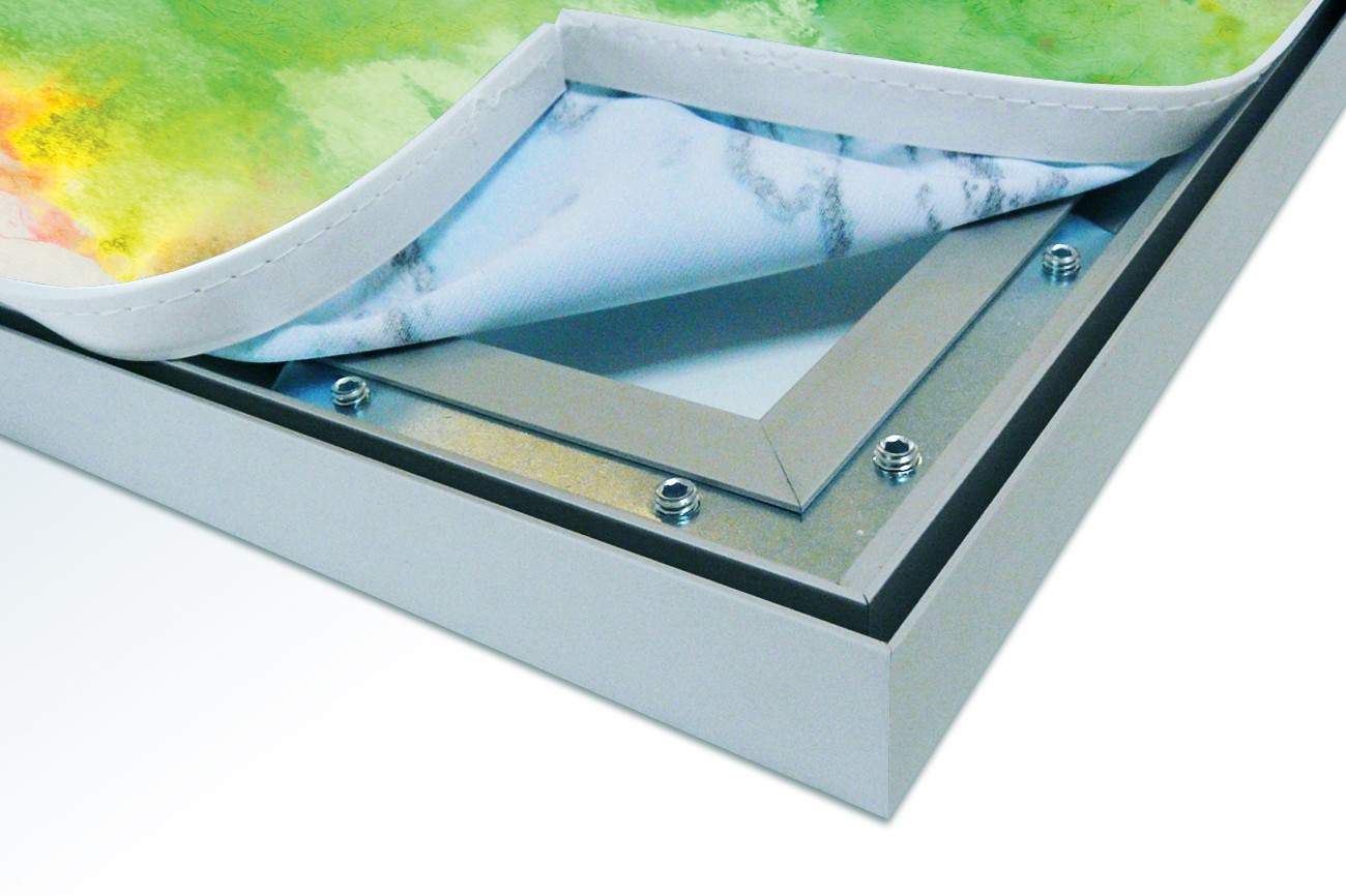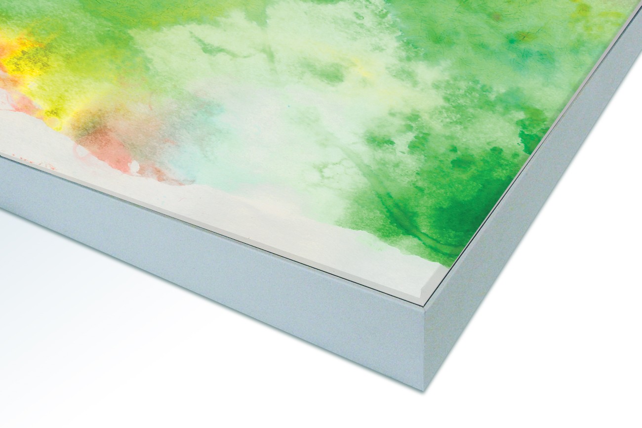 Het aluminium XL Wall Art frame is vanaf de zijde gezien 25 mm hoog, vanaf de voorzijde van de XL Wall Art zie je slechts een aluminium rand van circa 1 mm. De print wordt d.m.v. de sublimatie methode in en op het XL Wall Art doek (220 grams decostof) aangebracht en waarna het doek aan de achterzijde wordt voorzien van een rubber pees. Hierdoor is het werk gemakkelijk in het XL Wall Art frame te plaatsen.