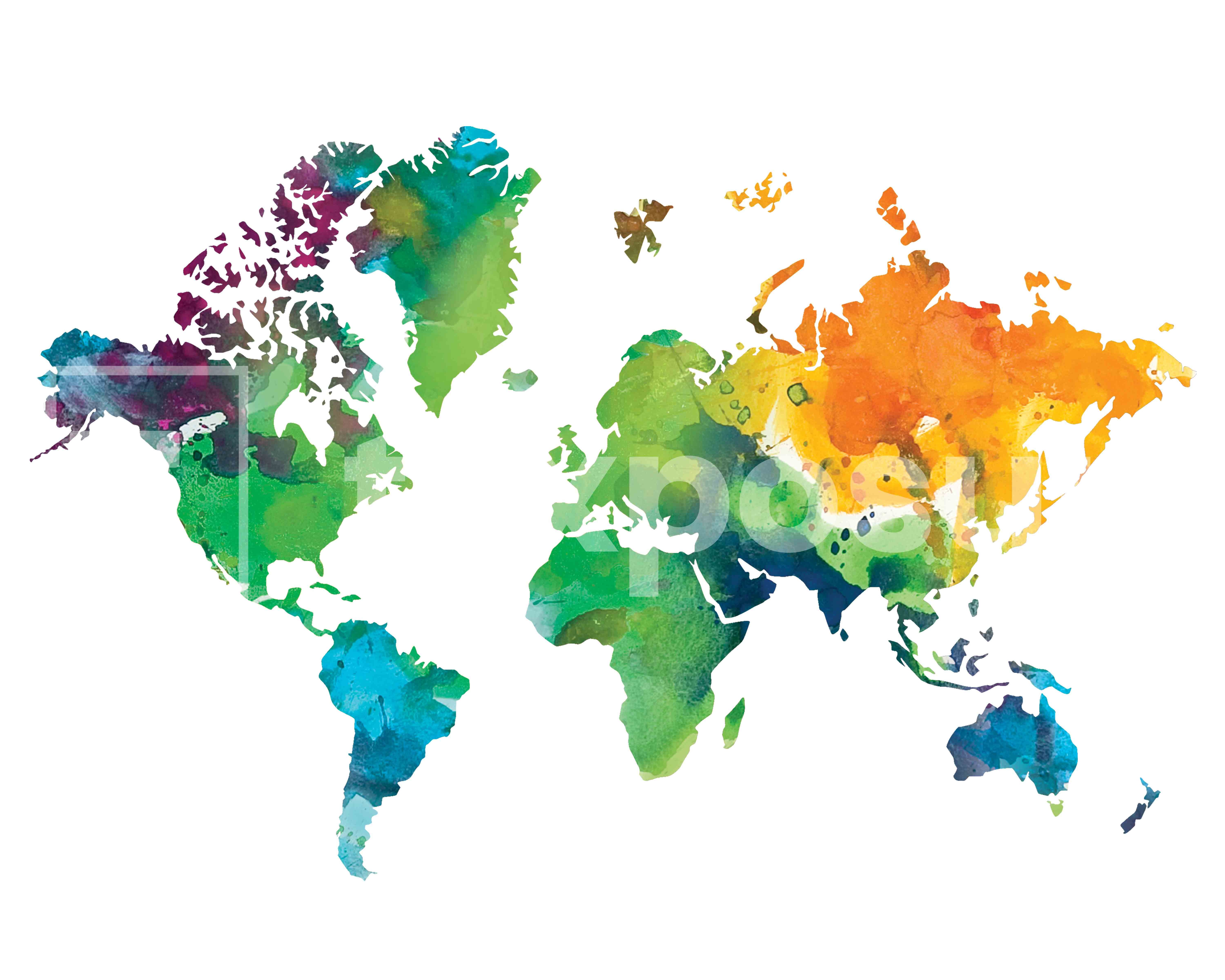Watercolor map van Victoria Brown is een kleurrijke weergave van een wereldkaart. Door de witte achtergrond zijn de landen en continenten goed zichtbaar. Leuk voor je interieur als je van reizen houdt. Verkrijgbaar in verschillende zeer grote formaten, inclusief textiel frame.