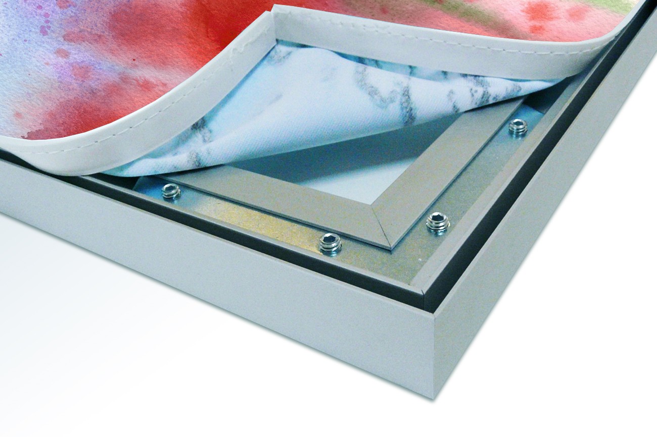 Het aluminium XL Wall Art frame is vanaf de zijde gezien 25 mm hoog, vanaf de voorzijde van de XL Wall Art zie je slechts een aluminium rand van circa 1 mm. De print wordt d.m.v. de sublimatie methode in en op het XL Wall Art doek (220 grams decostof) aangebracht en waarna het doek aan de achterzijde wordt voorzien van een rubber pees. Hierdoor is het werk gemakkelijk in het XL Wall Art frame te plaatsen.