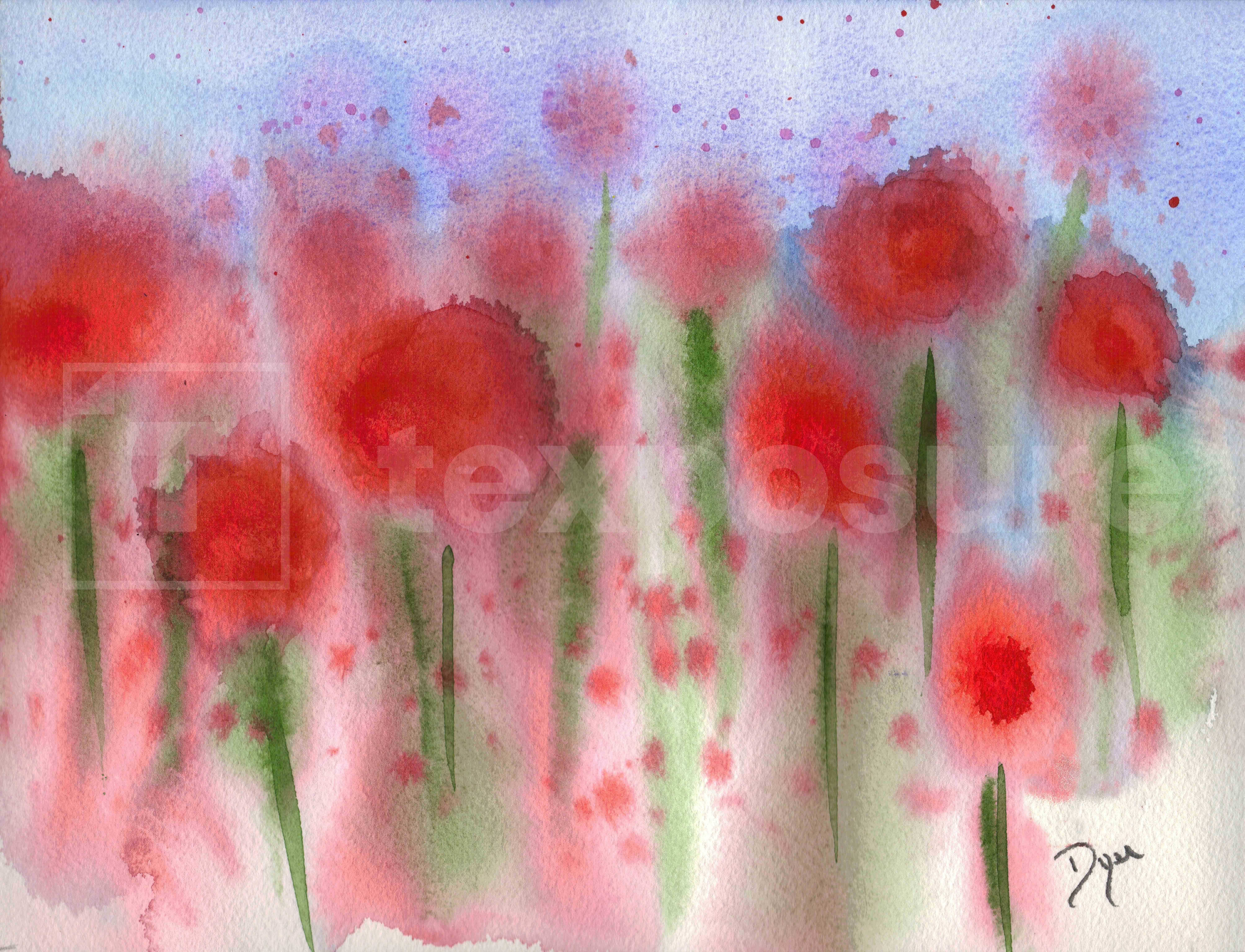 Wildflower van Beverly Dyer neemt je mee naar een zonnige dag in een veld vol rode bloemen.